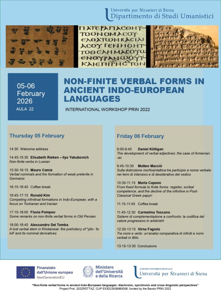 Non-finite verbal forms in ancient Indo European languages – Convegno finale del progetto – Siena, 5-6 febbraio 2026